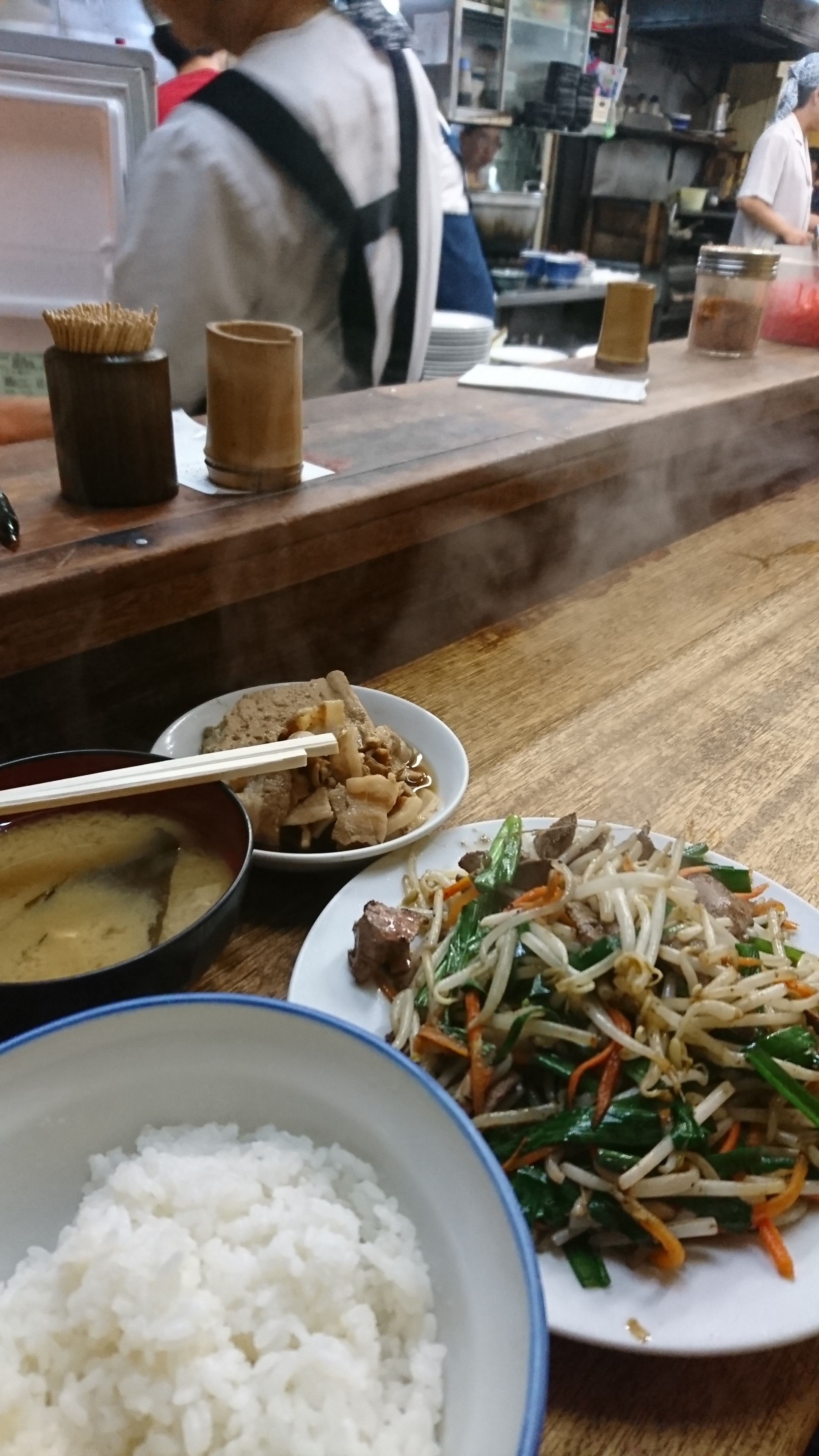 レバニラ炒め定食と肉豆腐、しっかりとした味付け、ご飯がすすみます。