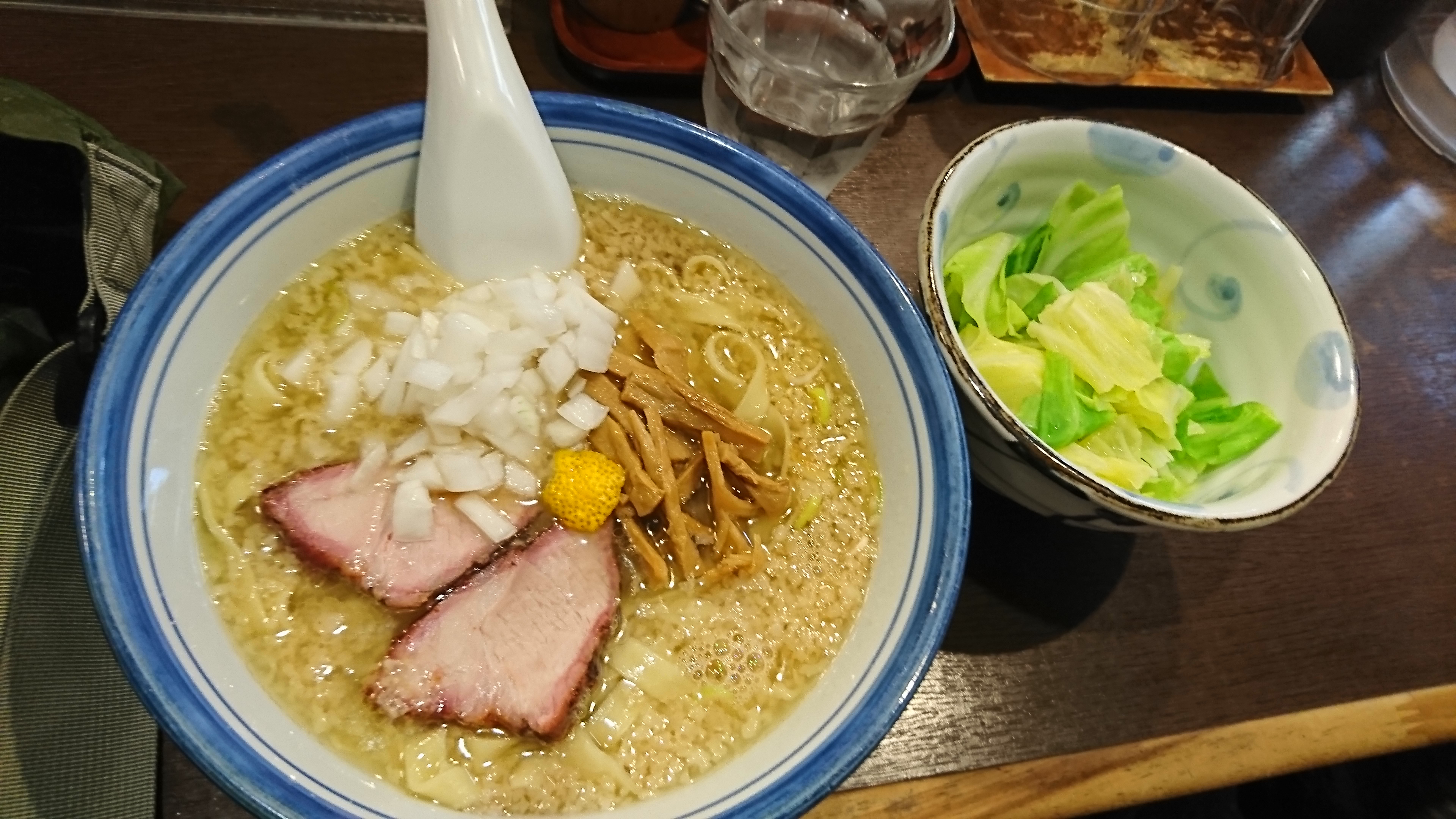 麺を口に運べばツルツルと噛み締めればシコシコと濃厚なスープに負けない麺の際立ちがあります。またザク切りのタマネギがアクセントになって油の重さを和らげてくれます。さらにキャベツをトッピングしたので麺の合間に噛み締めれば口がサッパリとします。